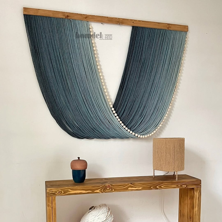 دیوارکوب دستساز کار شده با الیاف نخ پنبه طبیعی رنگرزی شده و چوب روس و مهره ی چوبی