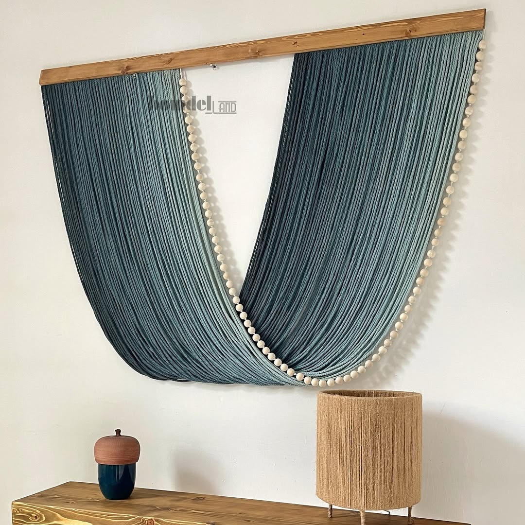 دیوارکوب دستساز کار شده با الیاف نخ پنبه طبیعی رنگرزی شده و چوب روس و مهره ی چوبی