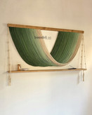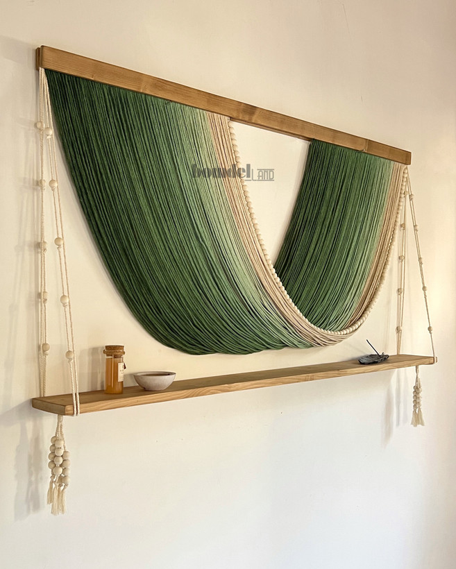 دیوارکوب دستساز کار شده با الیاف نخ پنبه طبیعی رنگرزی شده و چوب روس و مهره ی چوبی