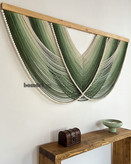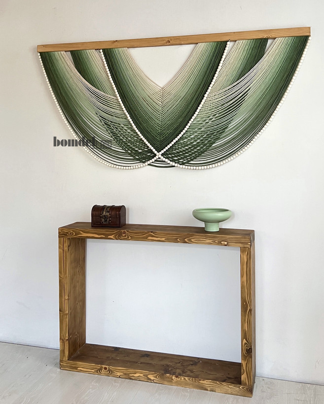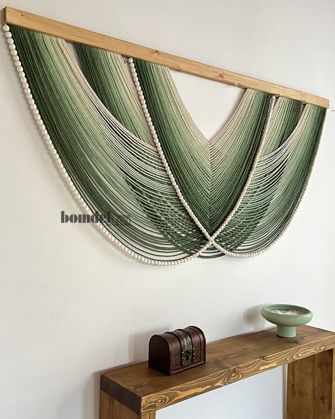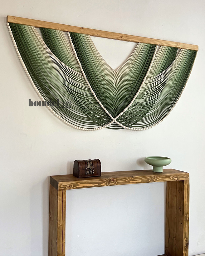 تابلو دستساز کار شده با الیاف رنگرزی شده و چوب روس و مهره ی چوبی