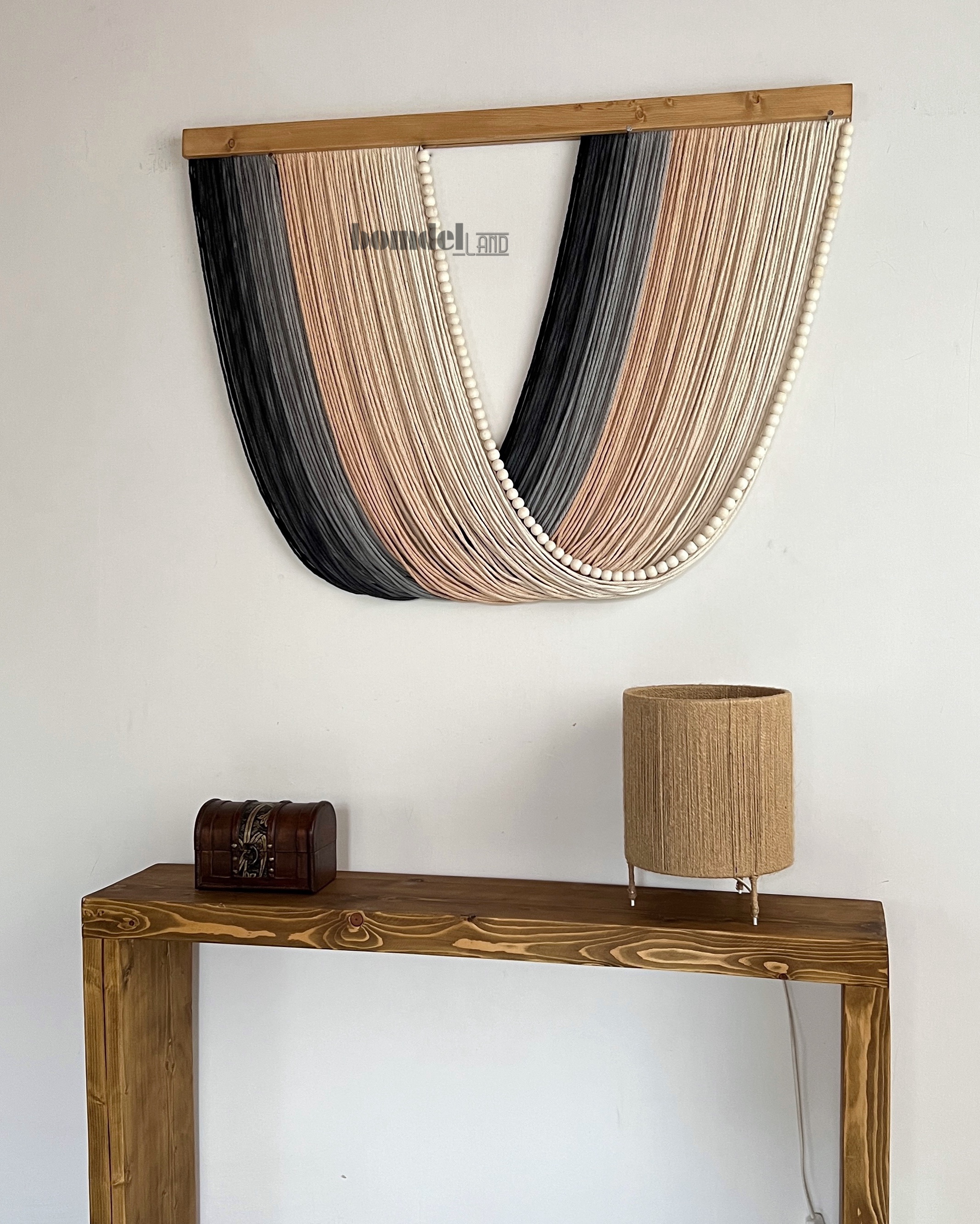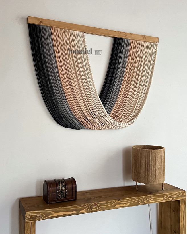 کار شده با الیاف رنگرزی شده و چوب روس و مهره ی چوبی