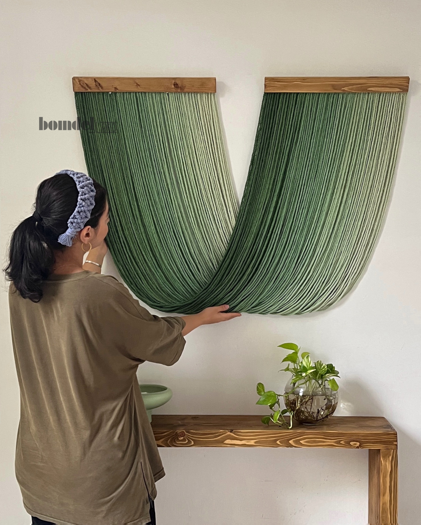 دیوارکوب دستساز کار شده با الیاف رنگرزی شده و چوب روس