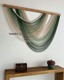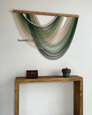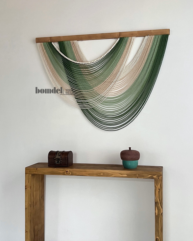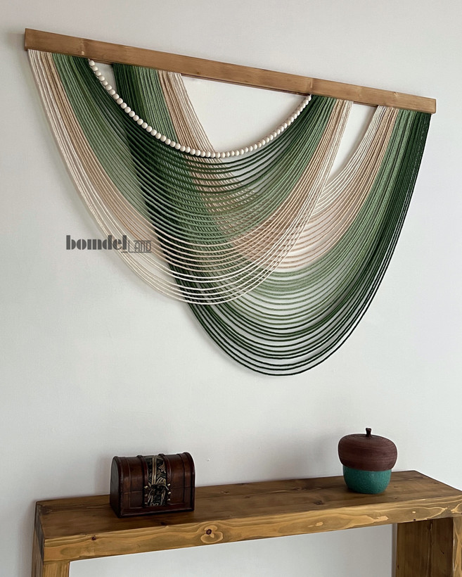 دیوارکوب دستساز کار شده با الیاف رنگرزی شده و چوب روس و مهره ی چوبی