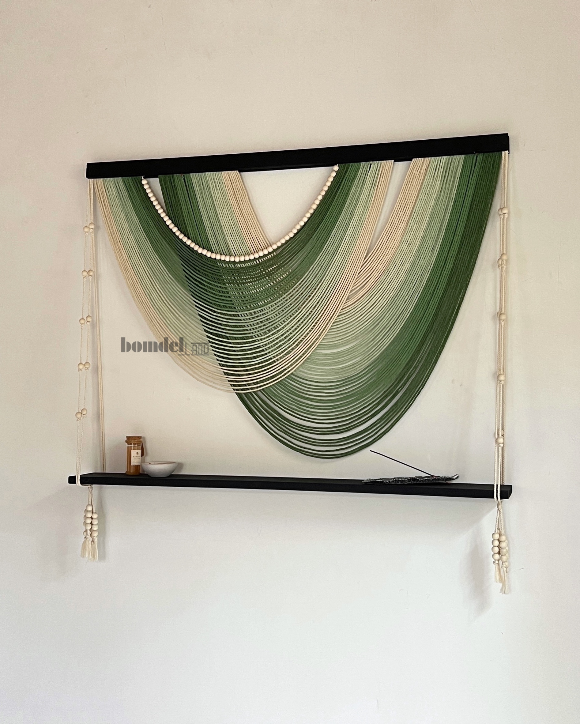 دیوارکوب دستساز کار شده با الیاف رنگرزی شده و چوب روس و مهره ی چوبی با طول ۱۲۰ سانتی متر و ارتفاع ۱۰۰ سانتی متر زمان آماده سازی و ارسال ۱۵ الی ۲۵ روز کاری