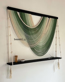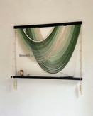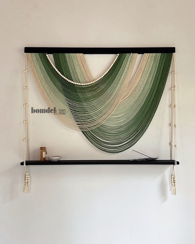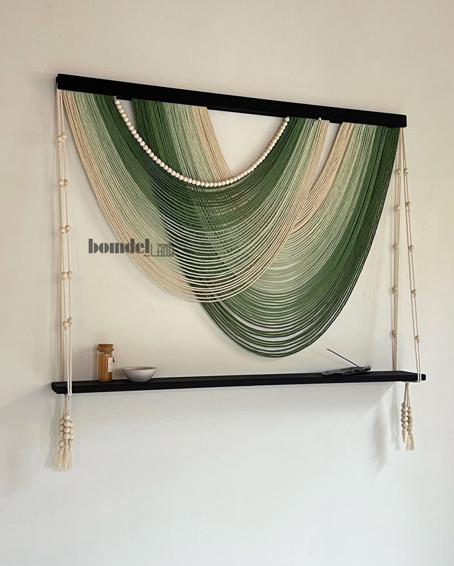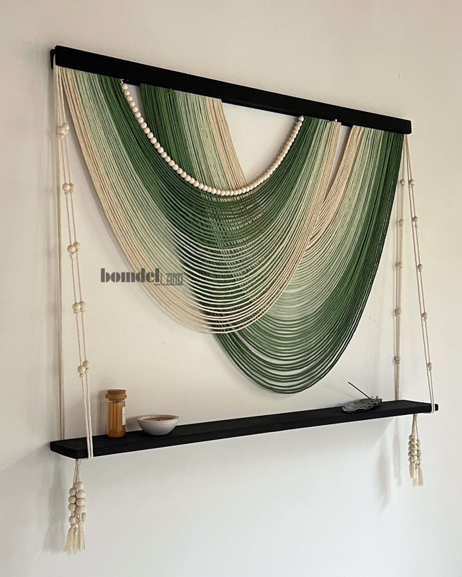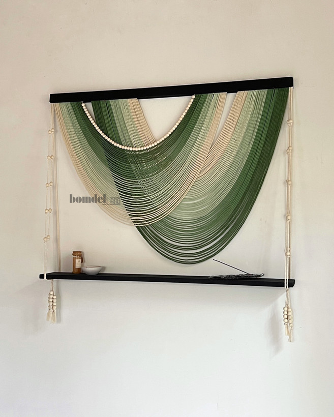 دیوارکوب دستساز کار شده با الیاف رنگرزی شده و چوب روس و مهره ی چوبی
