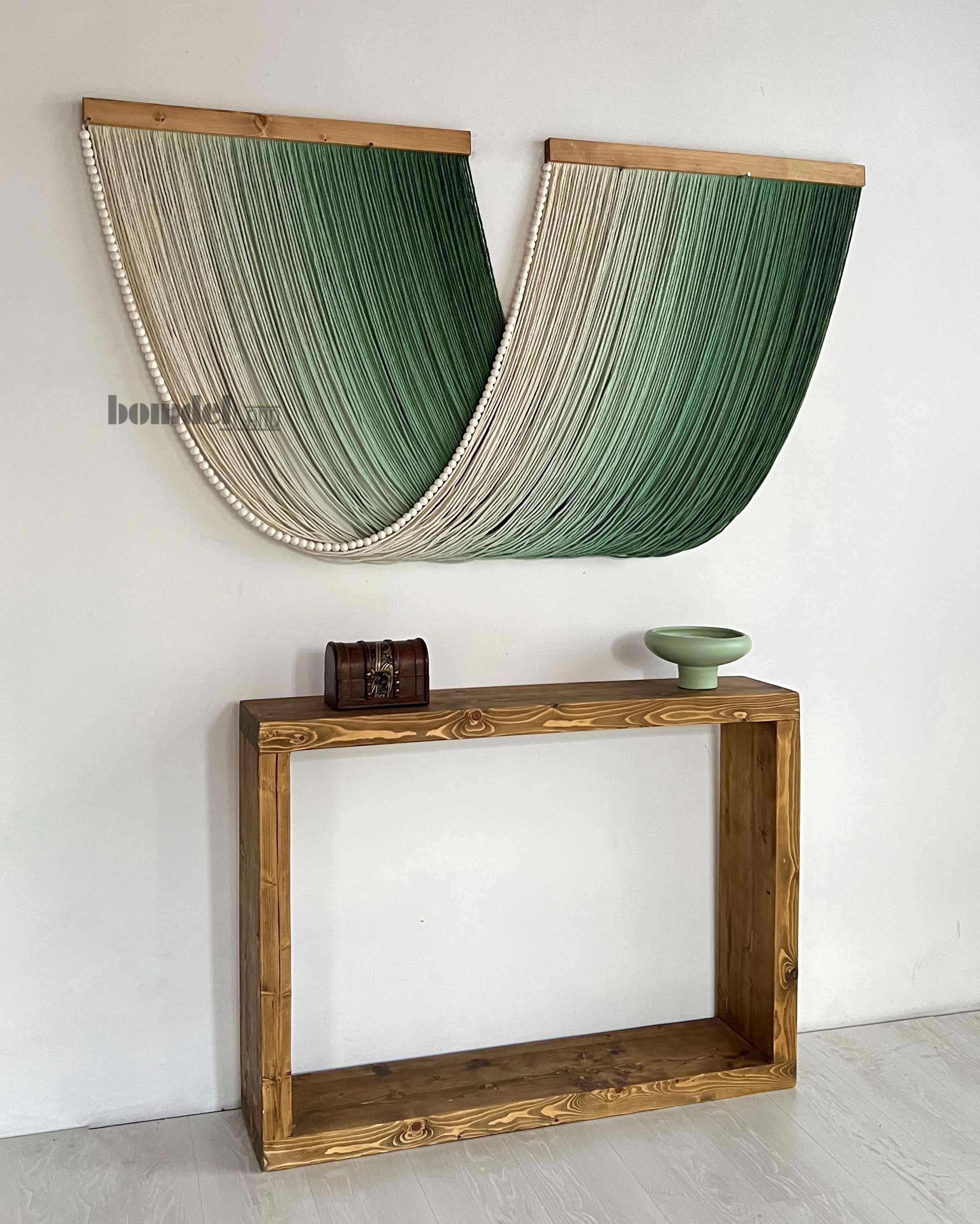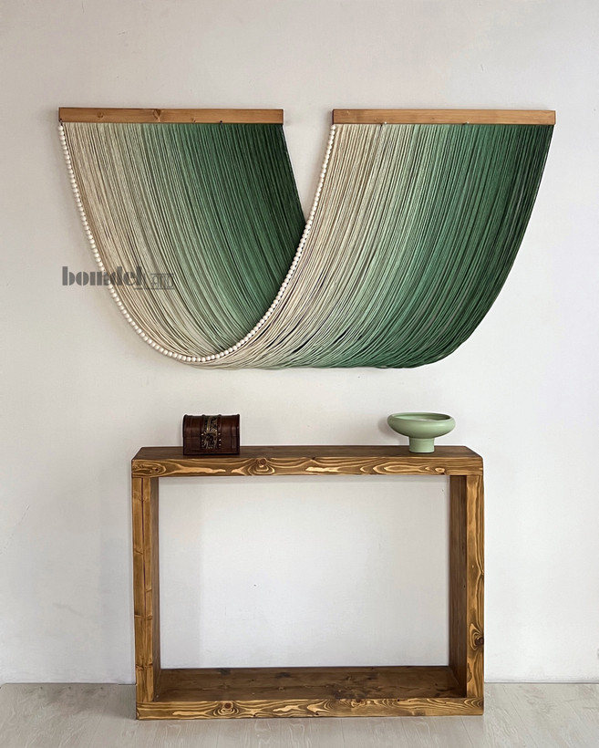 کار شده با الیاف رنگرزی شده و چوب روس و مهره ی چوبی
