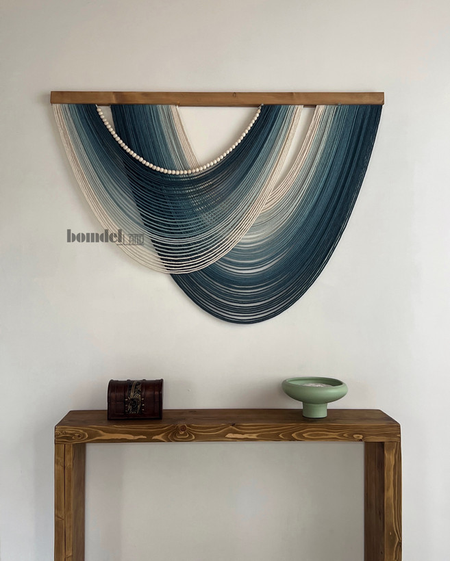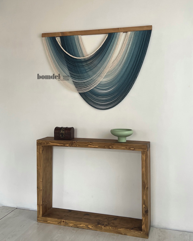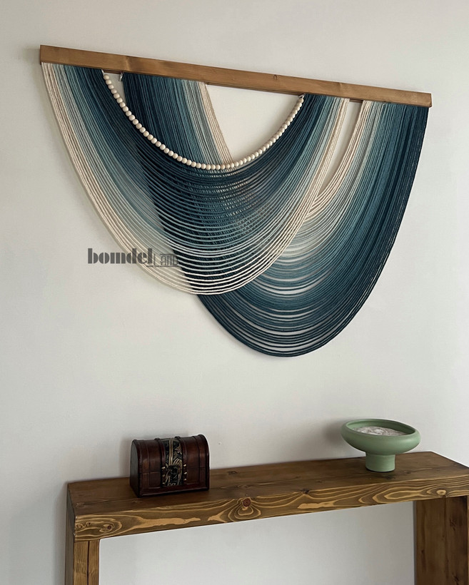کار شده با الیاف رنگرزی شده و چوب روس و مهره ی چوبی