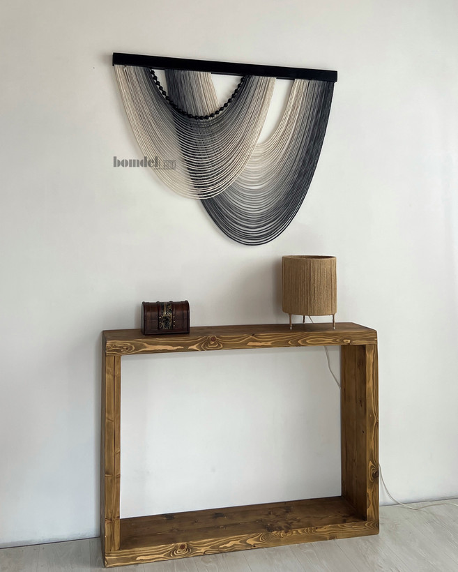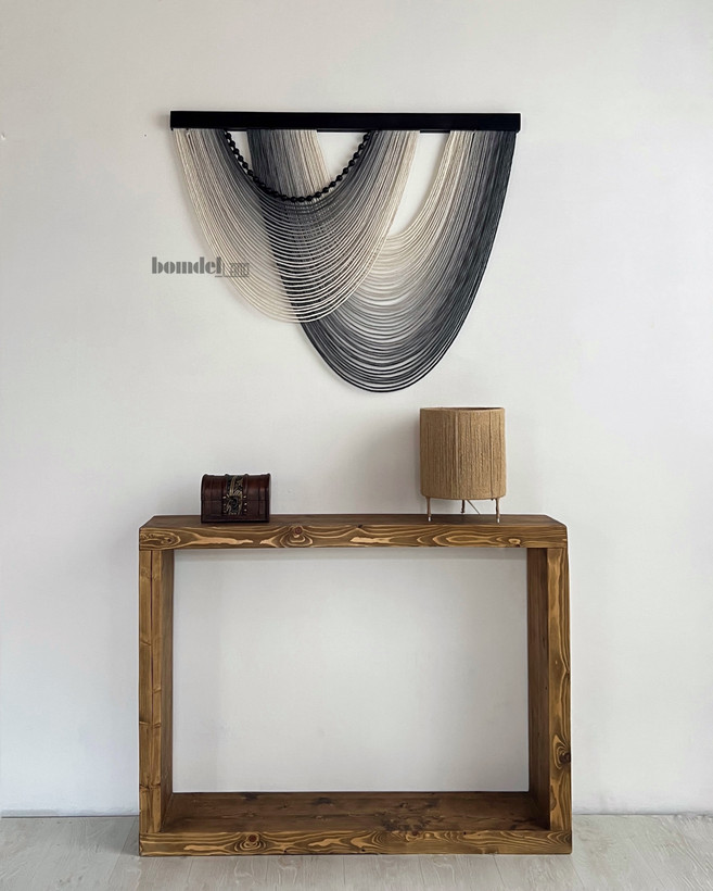 بومریس کار شده با الیاف رنگرزی و چوب روس و مهره ی چوبی
