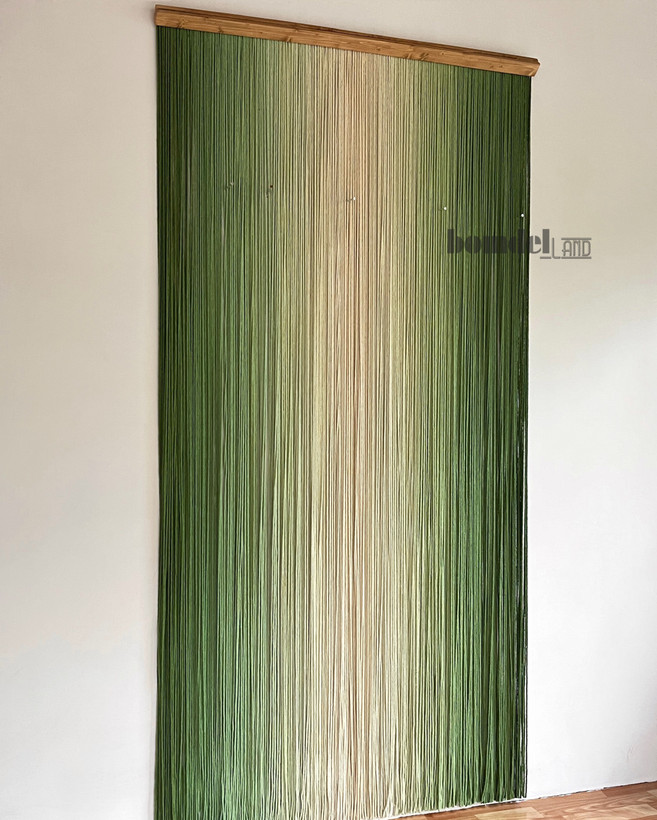 پرده دستساز رنگرزی شده با الیاف نخ پنبه و چوب روس