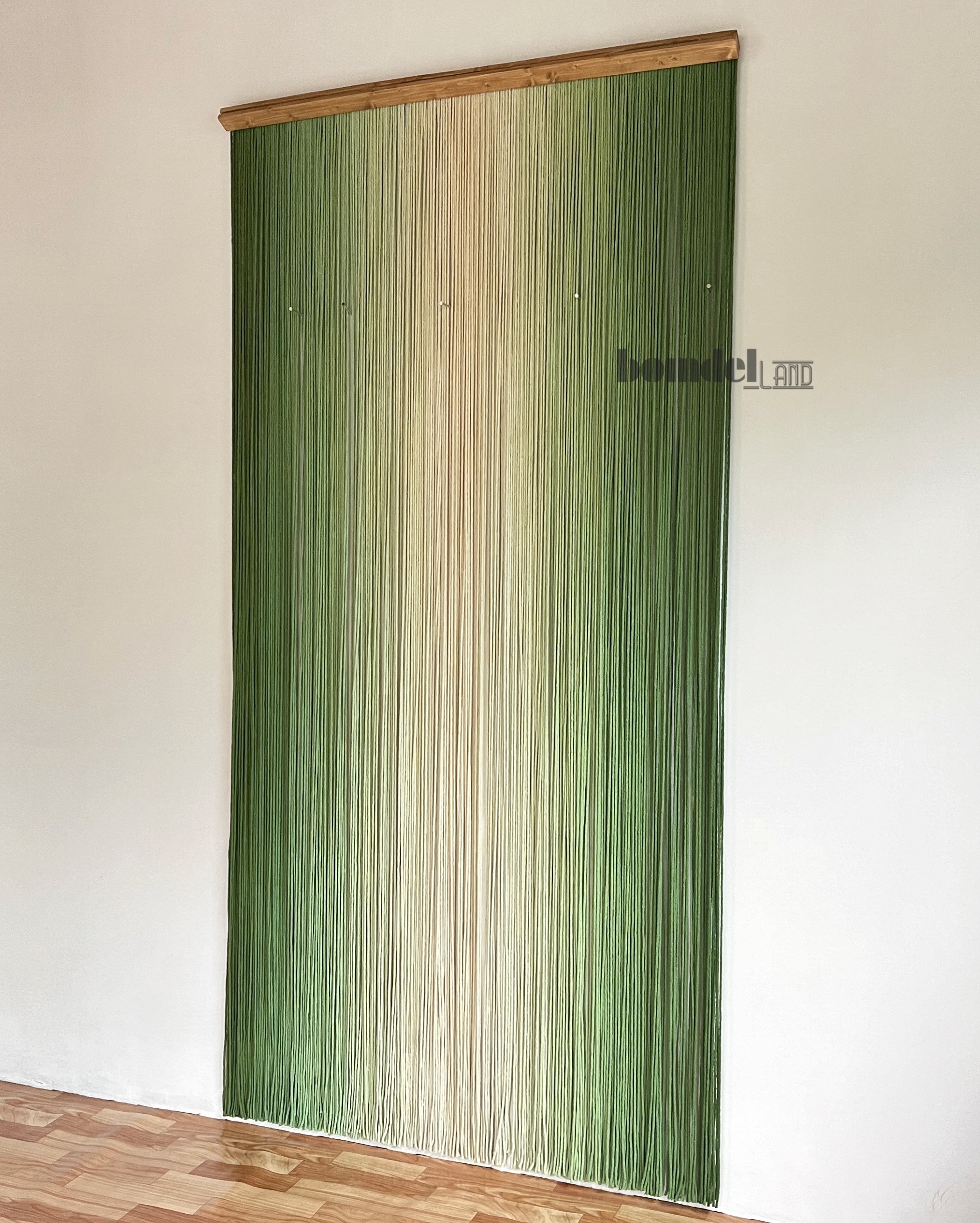 پرده دستساز رنگرزی شده با الیاف نخ پنبه و چوب روس