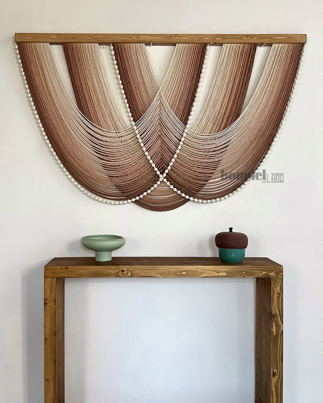 کار شده با الیاف نخ پنبه طبیعی رنگرزی شده و چوب روس و مهره ی چوبی