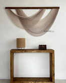 دیوارکوب کار شده با الیاف نخ پنبه رنگرزی شده و چوب روس و مهره ی چوبی