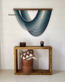 تابلو دستساز کار شده با الیاف رنگرزی شده و چوب روس و مهره ی چوبی
