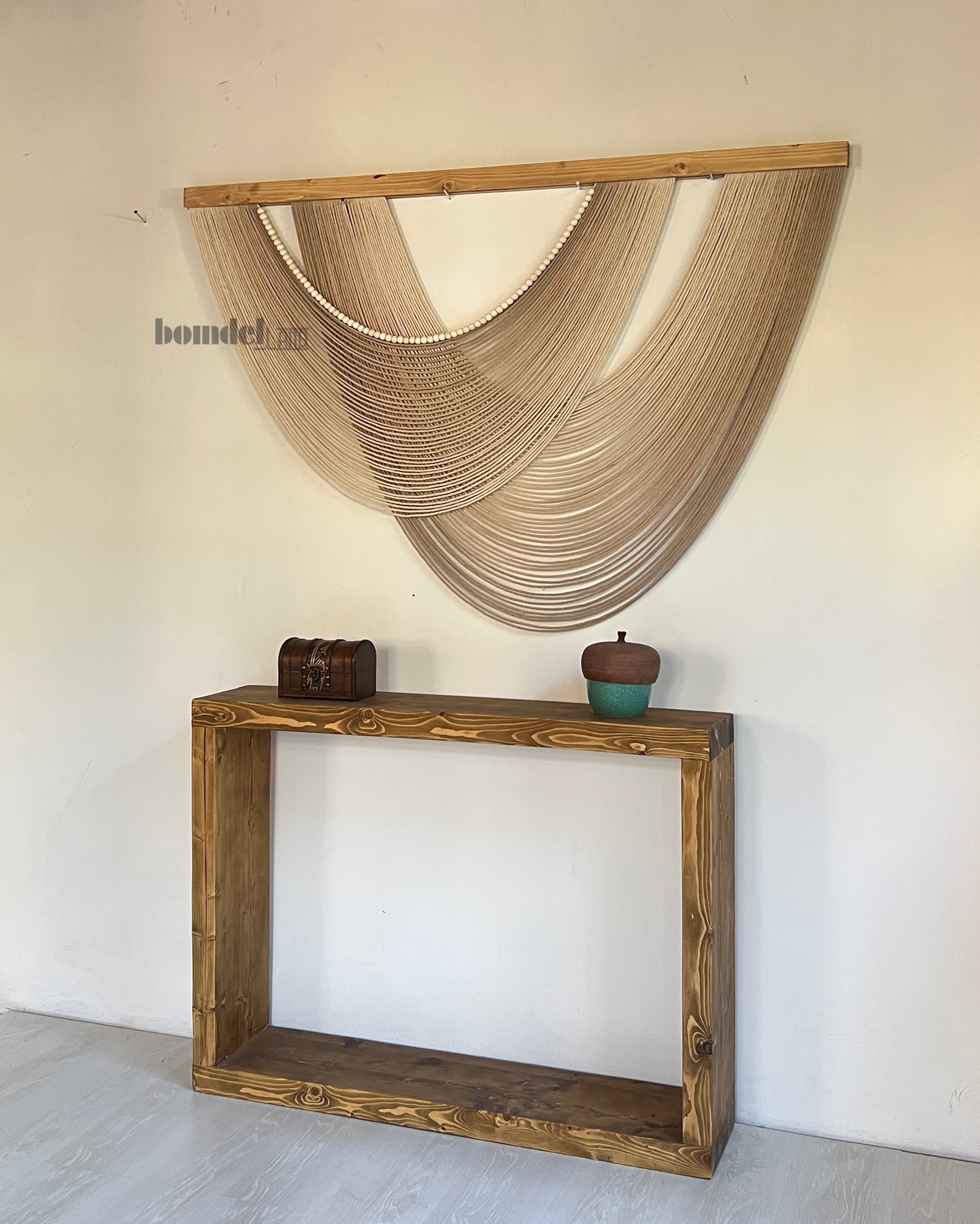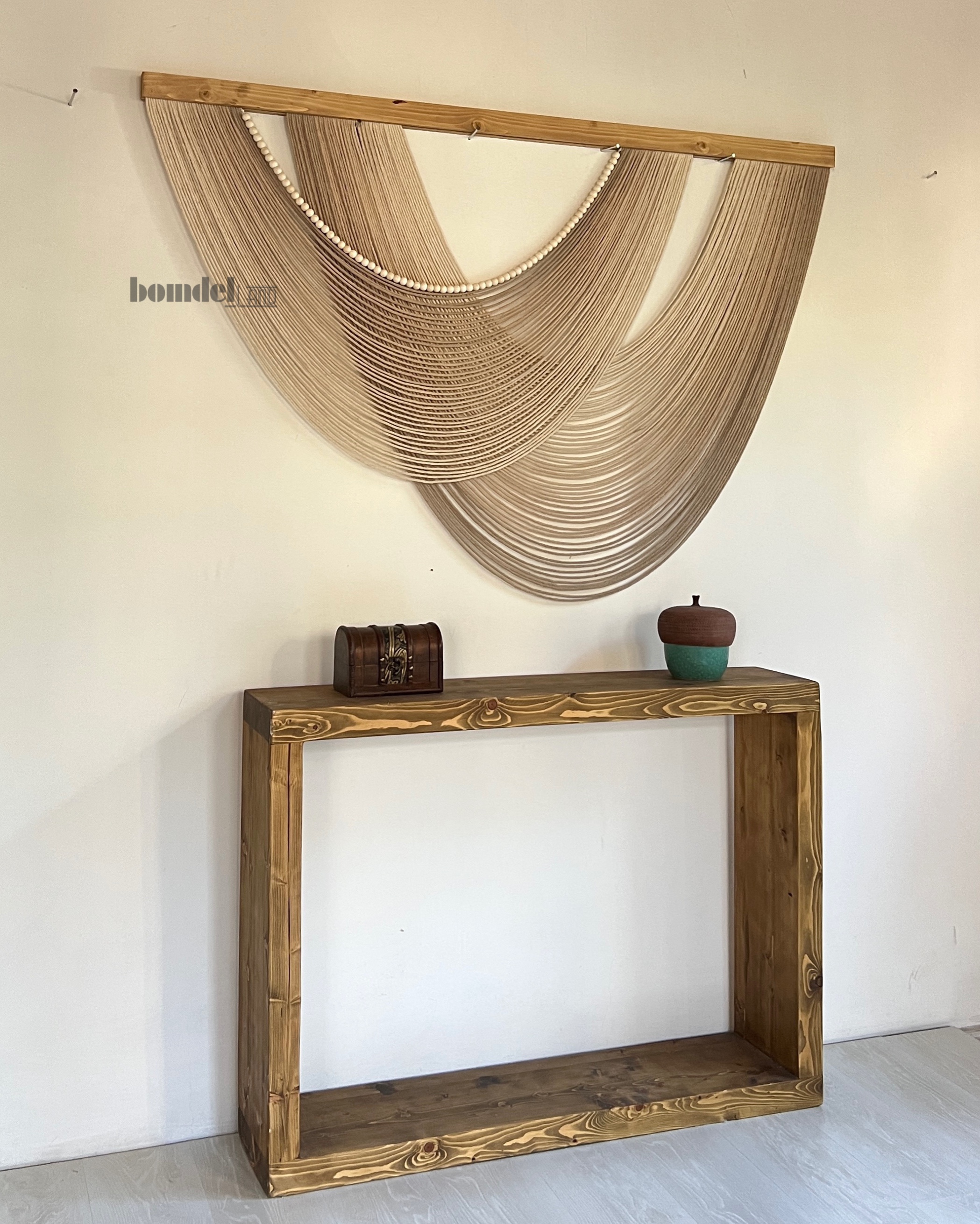 بومریس دستساز کار شده با الیاف رنگرزی شده و چوب روس و مهره ی چوبی با طول ۱۵۰ سانتی متر و ارتفاع ۱۰۰ سانتی متر زمان آماده سازی و ارسال ۱۵ الی ۲۵ روز کاری