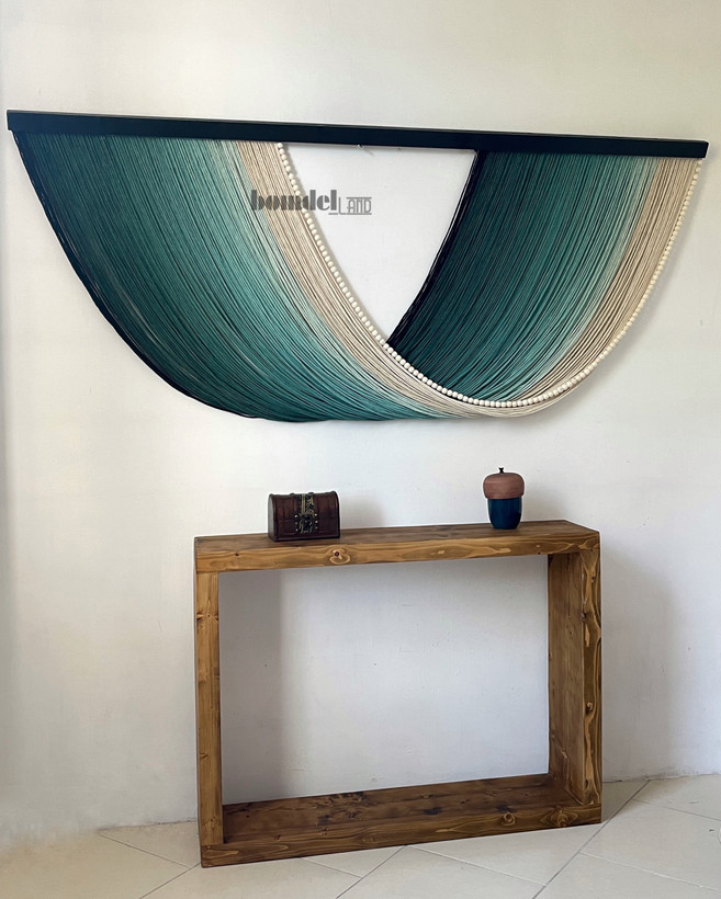 دیوارکوب دستساز کار شده با الیاف رنگرزی شده و چوب روس و مهره ی چوبی