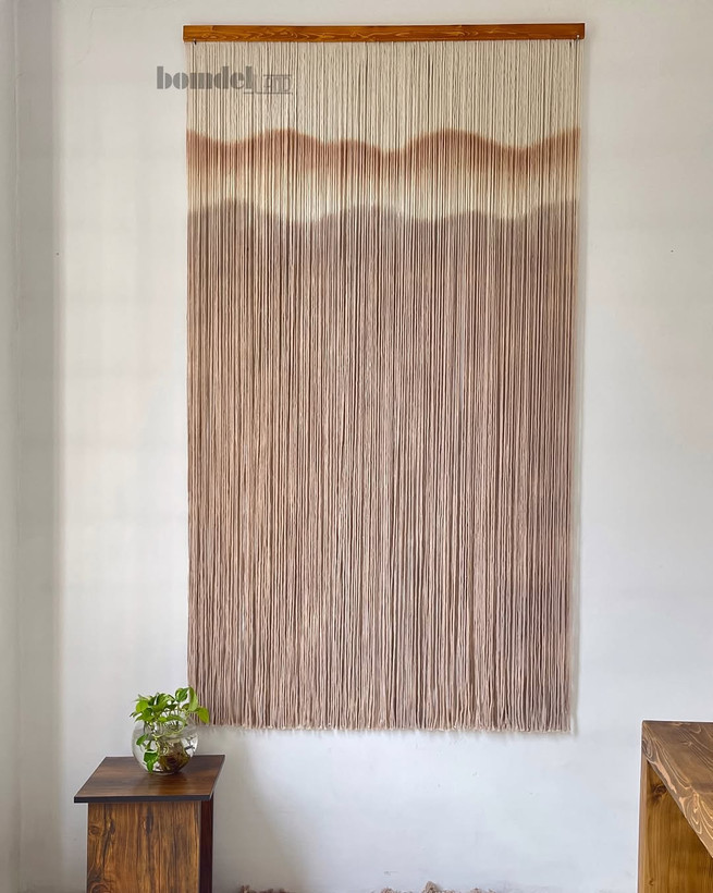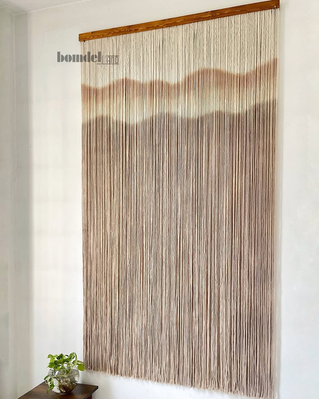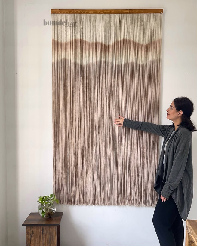 دیوارکوب و پرده دستساز کار شده با الیاف نخ پنبه طبیعی رنگرزی شده و چوب روس
