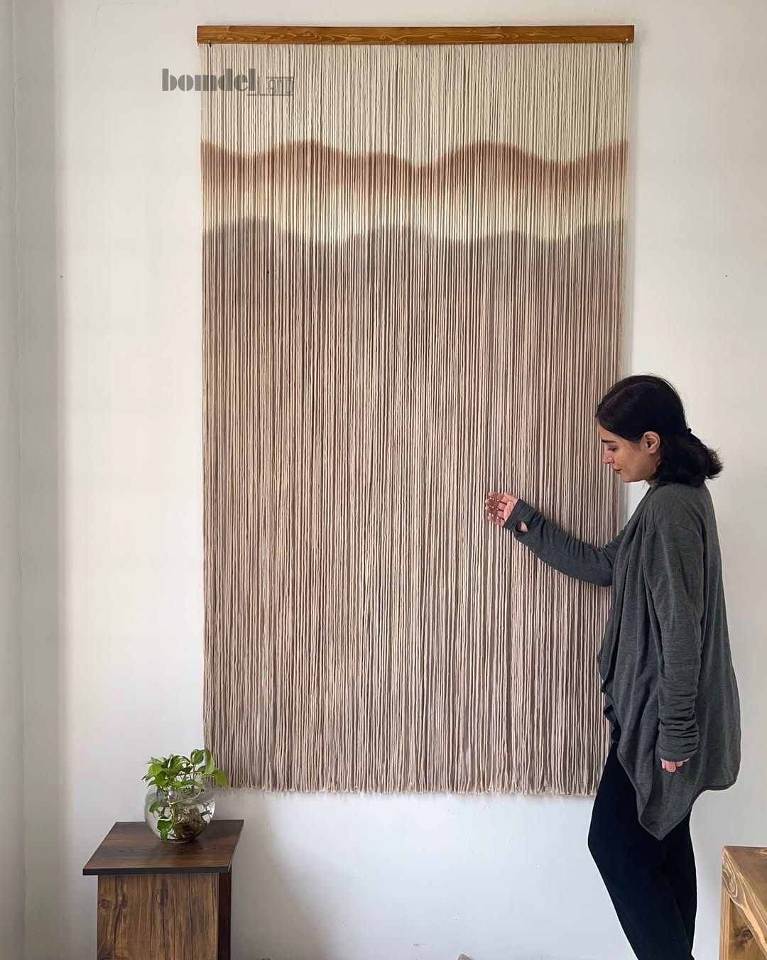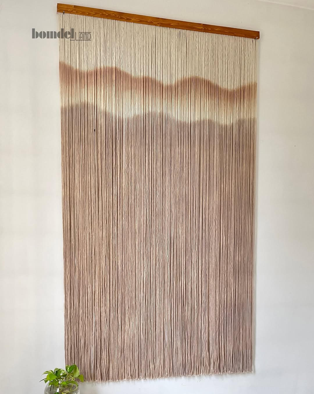 دیوارکوب و پرده دستساز کار شده با الیاف نخ پنبه طبیعی رنگرزی شده و چوب روس